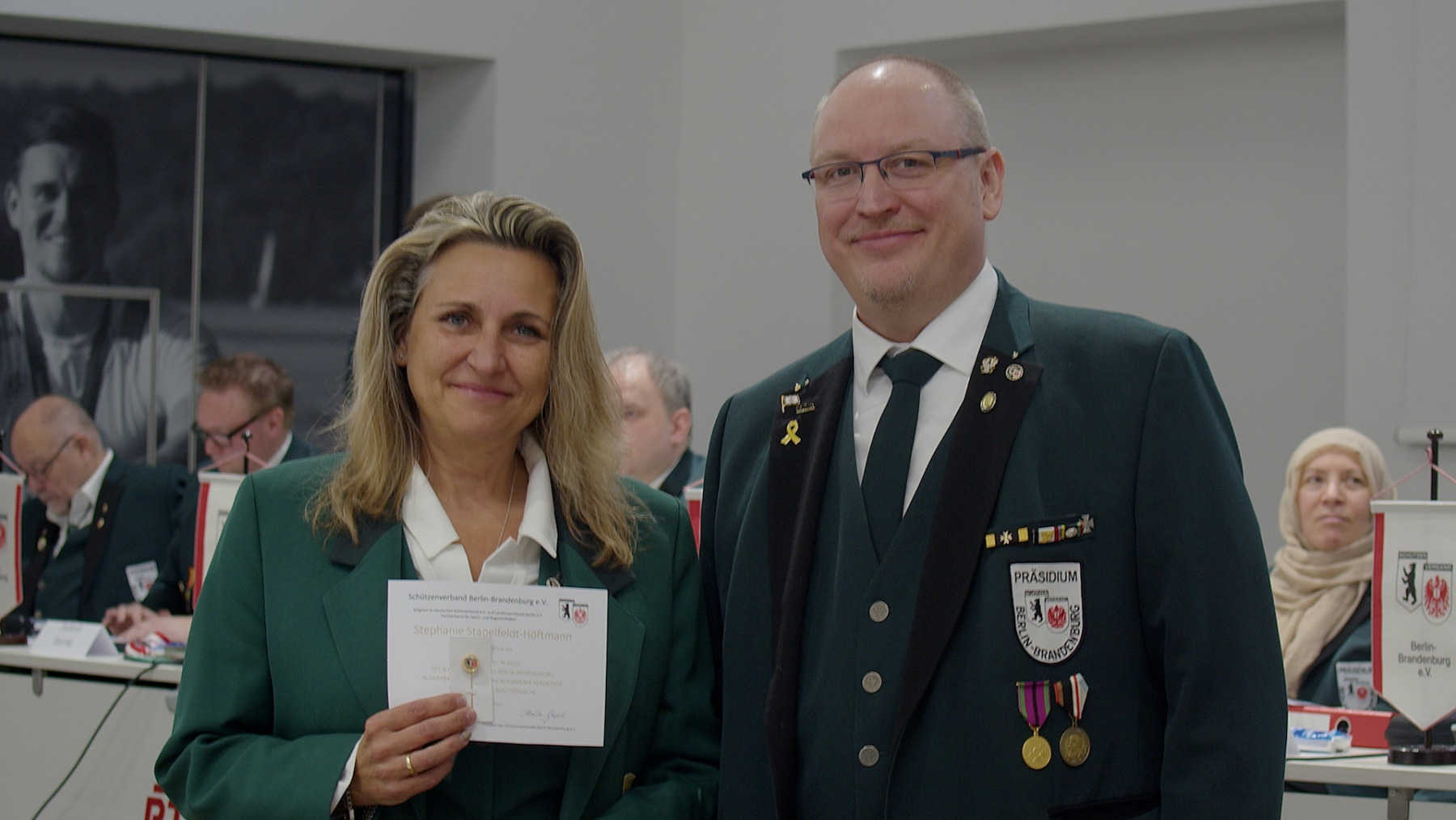 Wie sehr das Ehrenamt den Verband prägt, zeigte sich auch bei den Ehrungen verdienter Mitglieder. Stellvertretend steht Stephanie Stapelfeldt-Höftmann, die für ihr langjähriges Engagement in der Schützenjugend mit der Ehrennadel in Gold ausgezeichnet wurde. Ihr Einsatz steht beispielhaft für viele Ehrenamtliche, die sich über Jahre hinweg für Gemeinschaft, Nachwuchsarbeit und sportliche Entwicklung einsetzen.